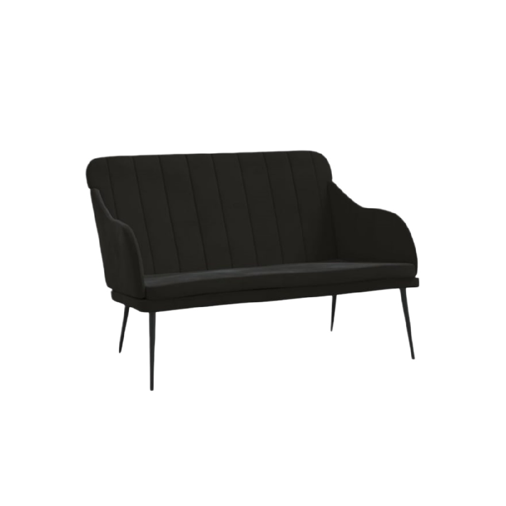 Banc design moderne en velours noir avec piétement en métal